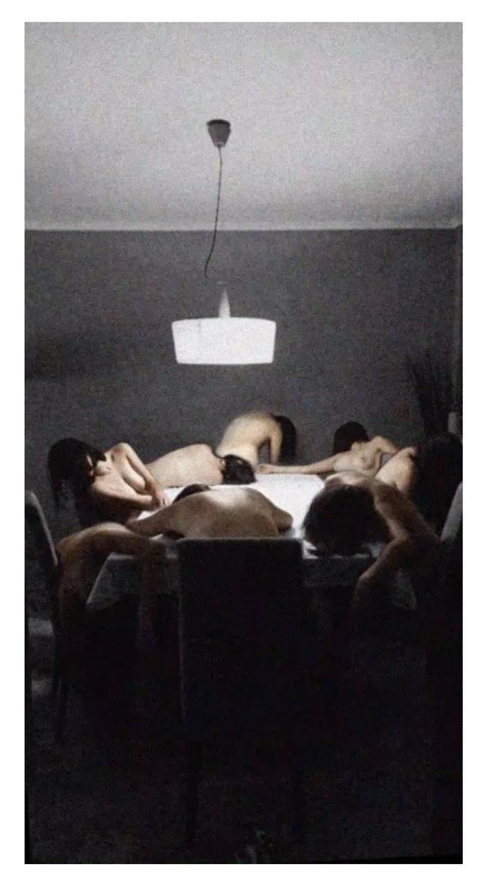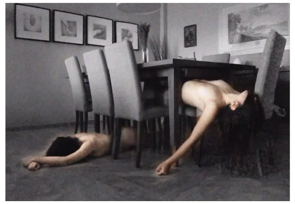 Naked II presents naked bodies crammed in various parts of the interior of a house, their rhythmic breathing synchronized to the the tyrannical beat of a clock. Compositions are created on the bed, in the bathroom or on the kitchen counter, only to be deconstructed and reconstructed through the deliberate removal and restoration of bodies within the visual frame. Naked II comments on the claustrophobia of the repetitive movements of everyday life.